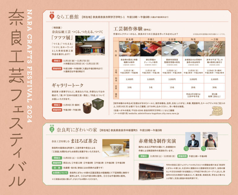 ならまちの「なら工藝館」と「奈良町にぎわいの家」で開催される、奈良工芸フェスティバル2024にて赤膚焼の制作実演を行います。