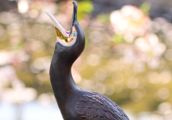毛並みや羽の表情など細部までこだわりって制作したカワウ。