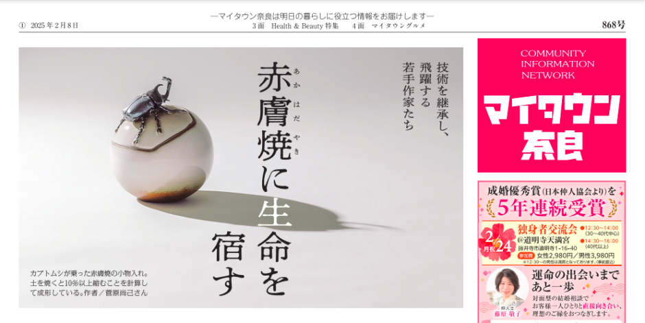 奈良県内でポスティングされているフリーペーパー、マイタウン奈良様に取材いただき、